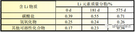 表3 使用ASR電解液100%DOD電池陽極可溶性鋰構成