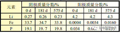 表1為100%SOC電池陰陽極的ICP-OES測試結果。陰極中Li含量變化不明顯,陽極的Li含量也維持在同一水平,因此不同存儲時間電池中陰陽極極片Li總量基本保持不變。