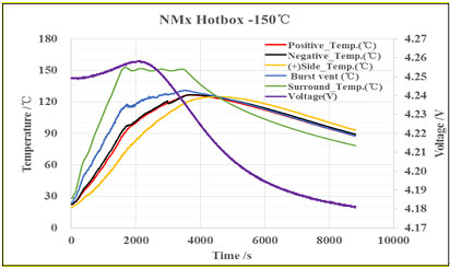 如電芯熱箱安全測(cè)試(見下圖),可以通過(guò)150℃,0.5h的嚴(yán)苛測(cè)試條件,而目前國(guó)標(biāo)(GB/T 31485-2015)的要求僅為130℃,0.5h。