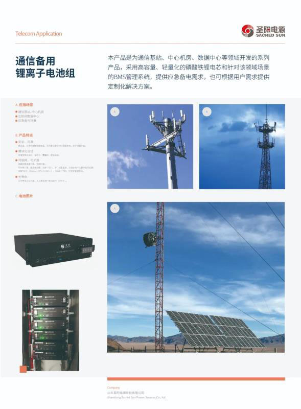 圣陽(yáng)電源自2009年以來(lái),陸續(xù)投入鋰電產(chǎn)業(yè)規(guī)劃建設(shè),結(jié)合客戶(hù)應(yīng)用場(chǎng)景,提供定制化產(chǎn)品和解決方案,在海內(nèi)外市場(chǎng)得到廣泛應(yīng)用。先后應(yīng)用于通信基站備用、數(shù)據(jù)中心機(jī)房、變電站直流屏、戶(hù)用儲(chǔ)能、規(guī)模儲(chǔ)能及相關(guān)UPS配套等領(lǐng)域。在通信備用領(lǐng)域,與中國(guó)移動(dòng)、中國(guó)電信、中國(guó)聯(lián)通、中國(guó)鐵塔、法國(guó)電信、德國(guó)電信等國(guó)際知名運(yùn)營(yíng)商形成長(zhǎng)期合作關(guān)系。