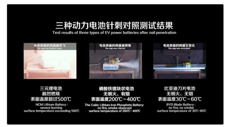 此次國(guó)家強(qiáng)制標(biāo)準(zhǔn)對(duì)于三元鋰電池來(lái)說(shuō)是一場(chǎng)“選拔型考試”,但是對(duì)于比亞迪全新推出的刀片電池來(lái)說(shuō)僅僅是“日常隨堂練習(xí)”。刀片電池所采用的磷酸鐵鋰材料本身就具有穩(wěn)定性好、耐高溫的特性,再加上比亞迪磷酸鐵鋰電池技術(shù)優(yōu)勢(shì)和安全保障,安全成為了刀片電池的特有標(biāo)簽。