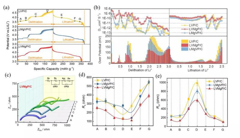 通過組裝半電池對不同摻雜樣品的電化學性能進行評估,并進一步采用循環(huán)伏安法、恒電流間歇電位滴定和交流阻抗等電化學手段揭示了鋰離子脫嵌過程中的動力學特征。