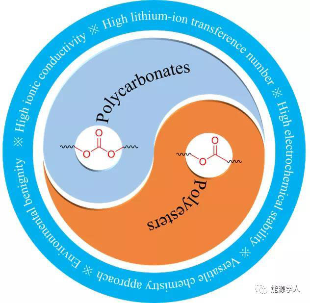 二次鋰離子電池具有諸多優(yōu)點,如無記憶效應(yīng)、高工作電壓、寬耐溫范圍、低自放電率和長循環(huán)壽命等,在新能源汽車領(lǐng)域的應(yīng)用中大放異彩。隨著新能源汽車對行駛距離和安全性的要求越來越高,采用固態(tài)電解質(zhì)替代液態(tài)電解液的新型固態(tài)鋰電池也成為目前電池領(lǐng)域的研究焦點。固態(tài)鋰電池不僅有望從根本上解決鋰電池的安全性隱患,也可大大提升其在能量密度和電池柔性化方面的優(yōu)勢。作為固態(tài)電解質(zhì)中最有前景的一種,聚合物固態(tài)電解質(zhì)(SPE)具有一定的柔性和彈性,且質(zhì)輕、成膜性好、與電極材料之間化學(xué)穩(wěn)定性好、界面接觸阻抗小,基于SPE的全固態(tài)鋰電池具有安全、柔性佳和加工性能好等優(yōu)點,且在電池能量密度、工作溫度區(qū)間、循環(huán)壽命等方面均有較大的提升。然而,目前研究得最多的SPE是基于醚類聚合物,如聚環(huán)氧乙烷(PEO),其室溫離子電導(dǎo)率低(<10?6 S /cm)、鋰離子遷移數(shù)小(< 0.2)、電化學(xué)穩(wěn)定窗口窄(< 3.9 V),極大限制了SPE的大規(guī)模應(yīng)用。羰基配位型SPE(主要為脂肪族聚碳酸酯類和聚酯類)由于其特殊的分子結(jié)構(gòu),賦予了該類SPE獨特的電化學(xué)性質(zhì)。