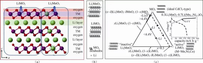 圖3 富鋰錳基正極材料晶體結(jié)構(gòu)示意圖