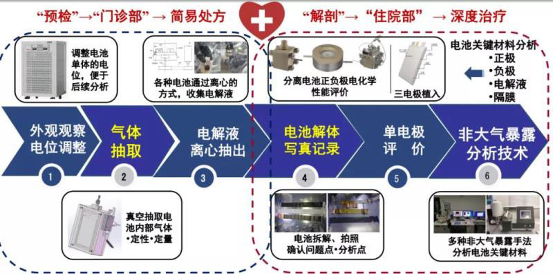 “理解電池才能不斷提升電池品質(zhì)?!表n廣帥認為,“電池醫(yī)院”的“望聞問切”價值在于通過對電池失效原因的準確分析,制定針對性的解決方案,幫助電池產(chǎn)品提升品質(zhì)。以下為韓廣帥博士在中國電池聯(lián)盟產(chǎn)業(yè)云課堂“動力電池失效原因分析與解析技術(shù)”直播演講時提出的兩個具體分析流程。