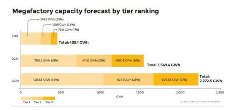 據(jù)悉,此次Benchmark發(fā)布的“鋰電池超級(jí)工廠評(píng)估”,涵蓋全球70 余家電池制造商,涉及 64 家鋰離子電池生產(chǎn)企業(yè)。目前,國(guó)內(nèi)多數(shù)電池生產(chǎn)企業(yè)仍處于“Tier 2”或“Tier 3”階段。
