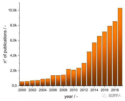圖1. 與鋰離子電池主題相關(guān)的出版物數(shù)量 (數(shù)據(jù)來(lái)源:Scopus)