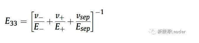 多層電極的特性通過下式,根據(jù)正極、負(fù)極和隔膜的特性計算而得,其中E和v分別是彈性模量和體積分?jǐn)?shù)。