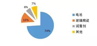 鋰電池產(chǎn)業(yè)的快速發(fā)展,致中國已成為目前世界第一的鋰消費大國,幾乎占用了全球每年40%的原鋰資源產(chǎn)量,為此需大量進(jìn)口。中國碳酸鋰消費市場的結(jié)構(gòu)與全球市場差別較大,電池領(lǐng)域的應(yīng)用占據(jù)70%以上市場。