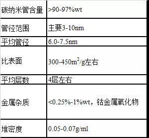 第六代碳納米管,金屬含量為鈷,含量小于0.25%-1%wt。對比俄羅斯某公司單層碳納米管,其金屬含量為15%,而且是鐵金屬。