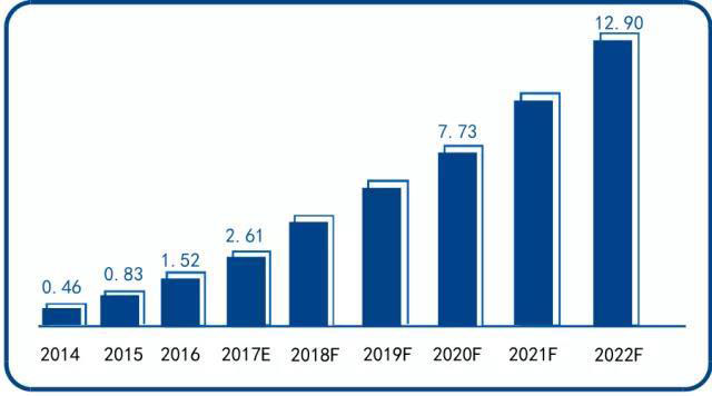 2014-2022年中國碳納米管導(dǎo)電漿料產(chǎn)值分析及預(yù)測(億元)