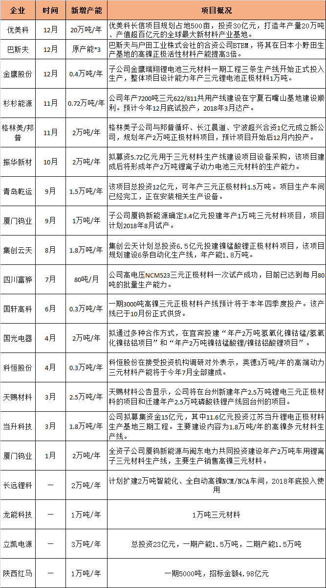 ▼國內(nèi)外正極材料擴(kuò)產(chǎn)情況