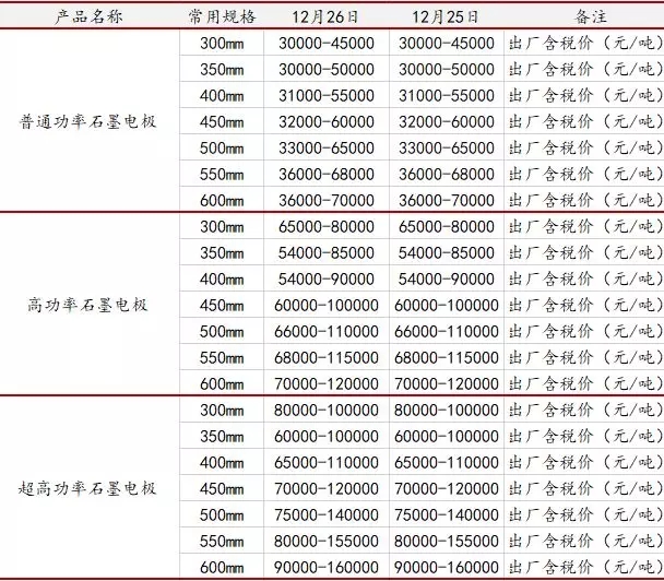 12月26日石墨電極主流成交參考價格(元/噸)