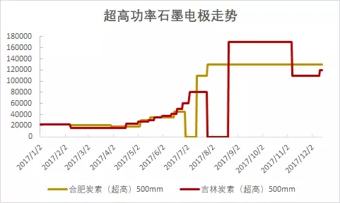 12月26日(周二),中國石墨電極主流成交價持穩(wěn),個別企業(yè)小幅上漲。原料低硫石油焦價格昨日上漲800元,普通石墨電極成本增加,價格小幅上漲2000元。高功和超高石墨電極資源偏緊,還有企業(yè)全部執(zhí)行訂單內(nèi)合同,無額外量供應(yīng)。截至2017年12月26日,中國石墨電極直徑300-600mm主流價格:普通功率30000-70000元/噸;高功率65000-105000元/噸;超高功率80000-160000元/噸。(百川資訊)