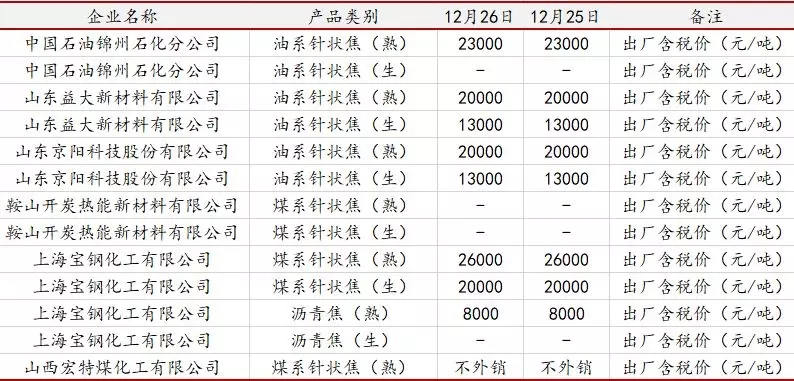 12月26日針狀焦主流成交參考價格(元/噸)