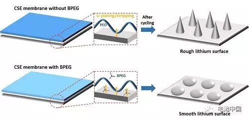 BPEG對(duì)鋰的沉積/脫出的影響示意圖