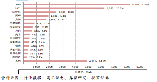 招商證券認(rèn)為,電池企業(yè)集中度有所下降。