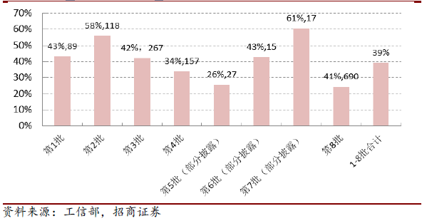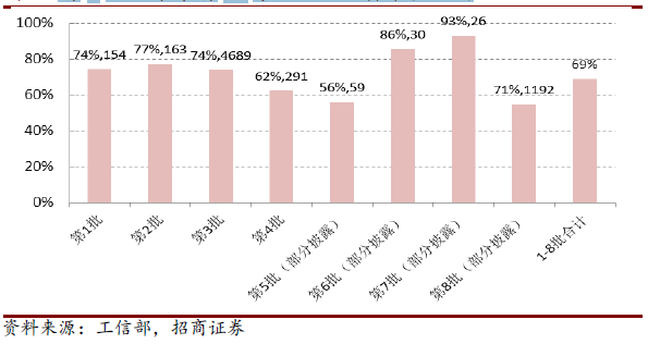 前8 批目錄符合1.1/1.2 倍補(bǔ)貼要求的情況分析
