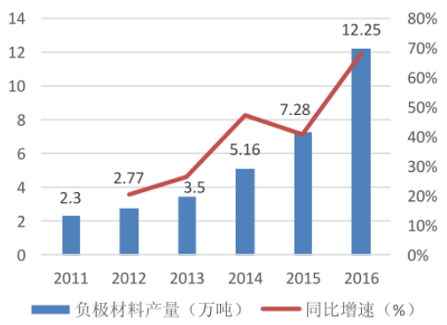 我國(guó)歷年鋰電池負(fù)極材料產(chǎn)量