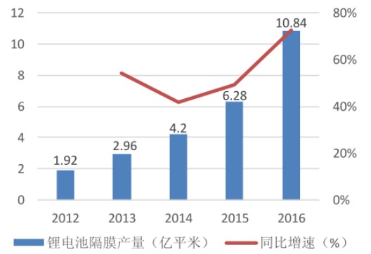 我國(guó)歷年鋰電池隔膜產(chǎn)量