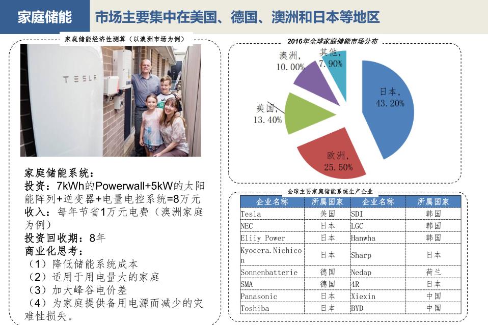 第一個(gè)是家庭儲(chǔ)能。在五年前日本的NEC就委托我們研究中國(guó)家庭儲(chǔ)能的市場(chǎng),它對(duì)家庭儲(chǔ)能市場(chǎng)的定義是一個(gè)便攜式的移動(dòng)儲(chǔ)能產(chǎn)品,你可以把它理解為是一個(gè)非常大的充電寶。尤其是現(xiàn)在在中國(guó)的一些地方,有些別墅或者說(shuō)一些獨(dú)棟的這種,在用分布式的戶用光伏系統(tǒng),這樣的系統(tǒng)必須要配備一個(gè)儲(chǔ)能的電池。在澳大利亞、日本等國(guó),很多地方的家庭都配備了這樣的家庭儲(chǔ)能產(chǎn)品,這個(gè)產(chǎn)品對(duì)他們的意義相當(dāng)于一個(gè)家用電器。也就是說(shuō),每個(gè)家庭買(mǎi)電冰箱、買(mǎi)電視的時(shí)候,也會(huì)買(mǎi)這樣一個(gè)家庭儲(chǔ)能產(chǎn)品。