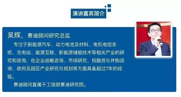 吳輝:各位朋友,大家上午好!非常高興有這樣一個(gè)機(jī)會(huì),來(lái)跟大家分享賽迪顧問(wèn)在中國(guó)儲(chǔ)能市場(chǎng)的一些研究。由于今天是投融資的專場(chǎng),站在產(chǎn)業(yè)的角度來(lái)看一下我們這個(gè)行業(yè)在未來(lái)存在的一些投資機(jī)會(huì)。其實(shí),剛才,劉秘書(shū)長(zhǎng)(編者注:中國(guó)化學(xué)與物理電源行業(yè)協(xié)會(huì)儲(chǔ)能應(yīng)用分會(huì)秘書(shū)長(zhǎng)劉勇先生)已經(jīng)把整個(gè)儲(chǔ)能產(chǎn)業(yè)的一些政策與技術(shù)路線,跟大家做了交流。接下來(lái),我將從市場(chǎng)的角度,來(lái)跟大家分析梳理一下整個(gè)行業(yè),以及在我們看來(lái),儲(chǔ)能產(chǎn)業(yè)未來(lái)的投資機(jī)會(huì)到底在哪里?