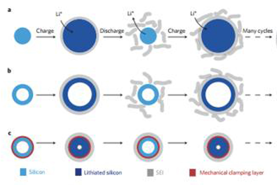 但是,SEI在形成過程中消耗了部分鋰離子,使得首次充放電不可逆容量增加, 降低了電極材料的充放電效率。在循環(huán)過程中,SEI不斷的增長,消耗電解液,會(huì)造成容量的加速衰減。