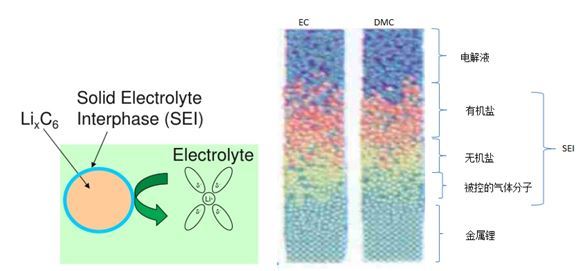 SEI膜,全稱solid electrolyte interface,固體電解質(zhì)界面(膜),顧名思義,他就是具有固體電解質(zhì)性質(zhì)的鈍化膜層。SEI是Li+的優(yōu)良導(dǎo)體,能夠讓鋰離子在其中進(jìn)行傳輸,進(jìn)入到石墨表面,進(jìn)行脫嵌鋰工作。同時(shí)又是良好的電子絕緣體,能夠有效的降低內(nèi)部的短路概率,改善自放電。更為重要的是,這玩意兒能有效效防止溶劑分子的共嵌入,避免了因溶劑分子共嵌入對電極材料造成的破壞, 因而大大提高了電極的循環(huán)性能和使用壽命。