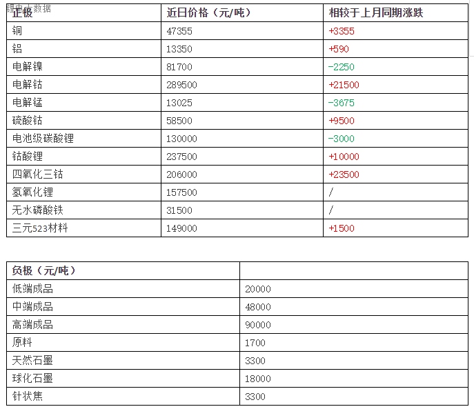 中國(guó)儲(chǔ)能網(wǎng)訊:一、近日原材料價(jià)格走勢(shì)