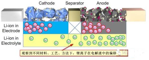 因?yàn)樵诔浞烹娺^程中會發(fā)生一種現(xiàn)象叫作“Li-ion deviation"(鋰離子偏移,指鋰離子的濃度差?),這種偏移會導(dǎo)致電池的實(shí)際可使用容量變小。這樣,為了能夠提高鋰電池的性能,人們非常希望能夠盡可能地減少這種偏移的發(fā)生。這時(shí),就迫切希望能夠了解到鋰離子在離開電極后,經(jīng)過電解液,到達(dá)另一極,整個(gè)過程中其運(yùn)動(dòng)規(guī)律是什么樣的。