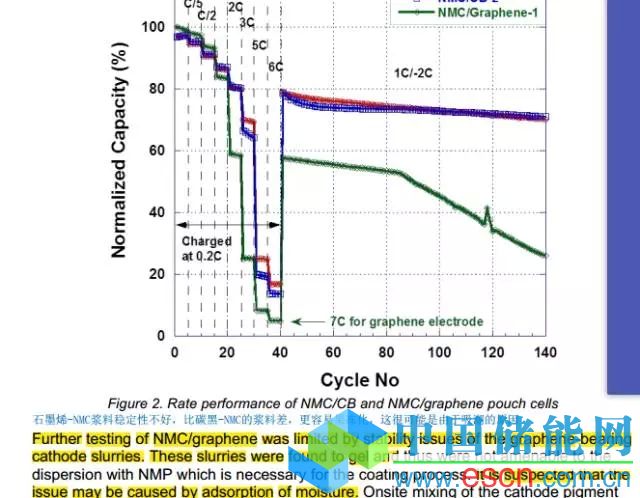 關(guān)于石墨烯對(duì)于調(diào)漿實(shí)際工藝的影響,有Oak Ridge National Laboratory與Vorbeck(有名的石墨烯業(yè)內(nèi)廠商)的披露的研究成果,他們發(fā)現(xiàn)石墨烯對(duì)于漿料的工藝的性能有很消極的影響,如下圖所示:
