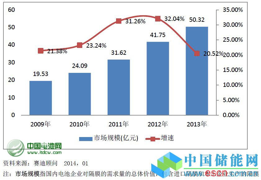 近年來,隨著我國(guó)鋰電行業(yè)的快速發(fā)展,鋰電四大材料:正極、負(fù)極、隔膜和電解液也隨之取得了很大的進(jìn)步,作為鋰電四大材料中技術(shù)含量最高的隔膜,隨著佛塑金輝(濕法)、格瑞恩(干法雙拉)和星源材質(zhì)(干法單拉)三種不同工藝路線率先突破跨國(guó)公司的技術(shù)壟斷,加之隔膜“暴利”的驅(qū)使,近5年來,吸引了大量的投資,目前全國(guó)累計(jì)投入資金約40億元,國(guó)內(nèi)涉足隔膜的企業(yè)已近接近40家,規(guī)劃的產(chǎn)能達(dá)到8億平米,已經(jīng)遠(yuǎn)遠(yuǎn)超出2013年全球的實(shí)際用量7.5億平米,而目前我國(guó)隔膜的年用量在2.5億平米,這其中還有1億多平米被日本的東燃化學(xué)、旭化成和美國(guó)的Celgard占領(lǐng),除少數(shù)隔膜領(lǐng)頭企業(yè)在初期取得可觀的盈利以外,大部分國(guó)產(chǎn)隔膜企業(yè)舉步維艱。