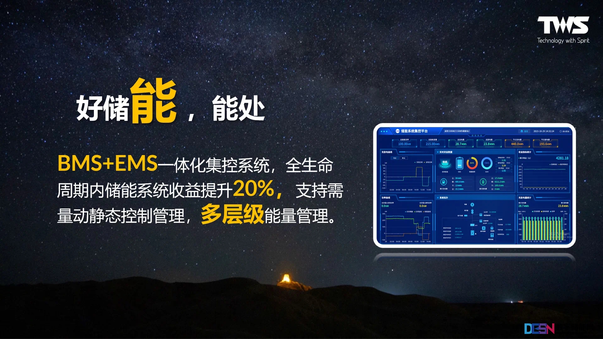 新品BMS+EMS采用一體化集控系統(tǒng),使得全生命周期內(nèi)儲能系統(tǒng)收益提升20%;并且支持需量動靜態(tài)控制管理,做到多層級能量管理;結(jié)合智能優(yōu)化算法和云平臺遠程監(jiān)控,AI模型自學習優(yōu)化、實時診斷健康狀態(tài)、出具數(shù)據(jù)報告分析,以精準科學的“能源管理方案”助力工商業(yè)儲能高效設計運營。