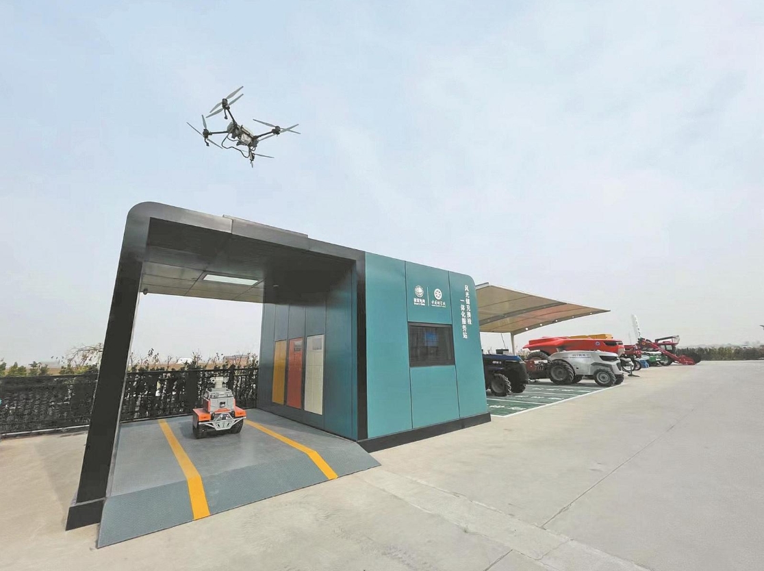 服務(wù)站應(yīng)用了無人駕駛電動(dòng)農(nóng)機(jī)自動(dòng)尋樁技術(shù),配備有序和車網(wǎng)交互(V2G)直流充電樁、智能無人充電樁、農(nóng)機(jī)換電柜、農(nóng)機(jī)檢修柜,可為電動(dòng)農(nóng)機(jī)提供充換電和檢修一體化服務(wù),能同時(shí)滿足13臺(tái)農(nóng)機(jī)的有序充電需求。