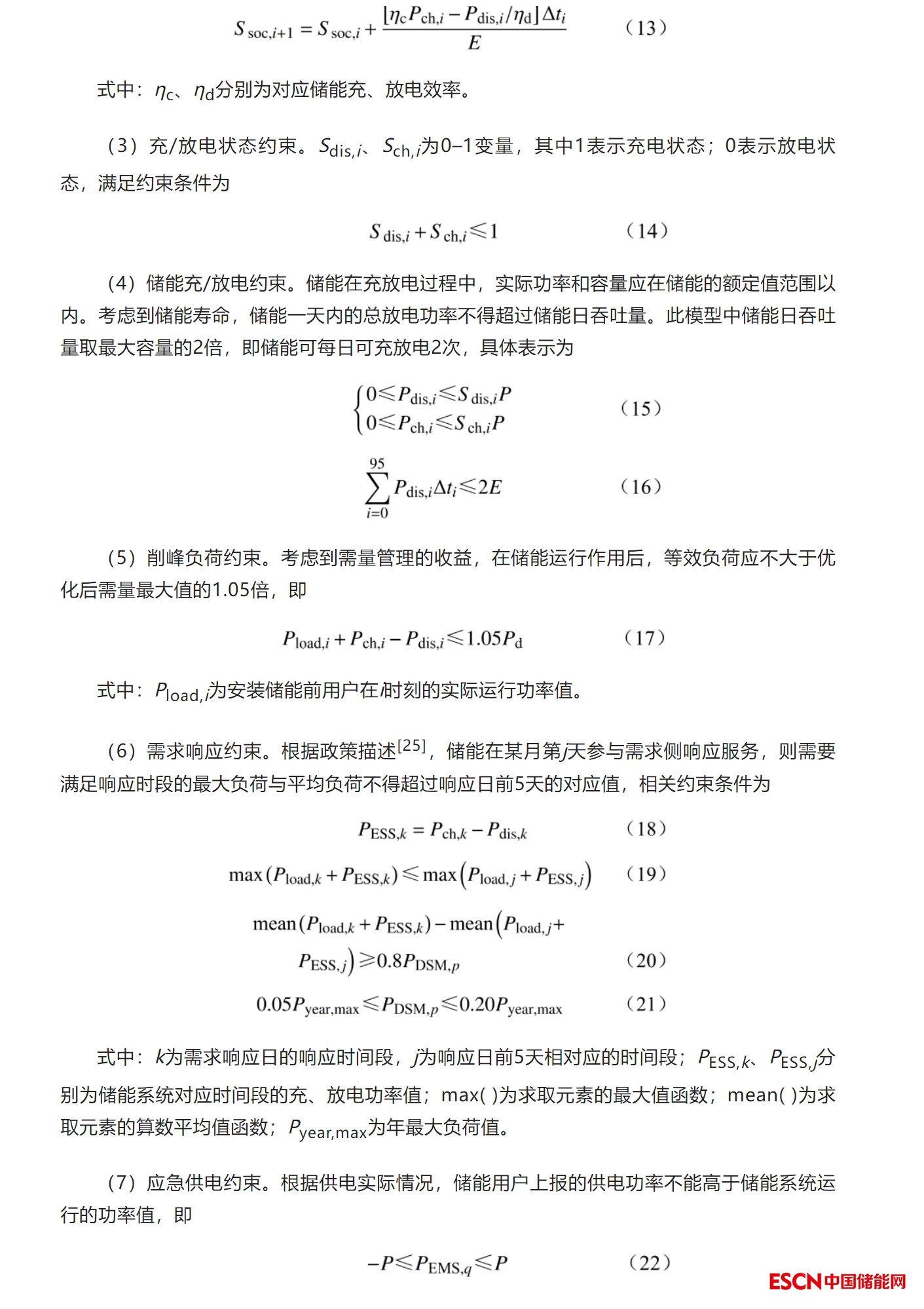 用戶側配置儲能系統(tǒng)可響應輔助服務市場中各種電力政策以及相關服務應用,為用戶提供直接收益[13-14]。目前儲能系統(tǒng)仍然存在投資成本較高和運行效率較低的問題[15-17],導致用戶配置儲能后不能充分地獲取其帶來的經濟效益。因此,如何在考慮參與輔助服務的前提下,對儲能容量優(yōu)化配置和經濟性分析具有重要意義。