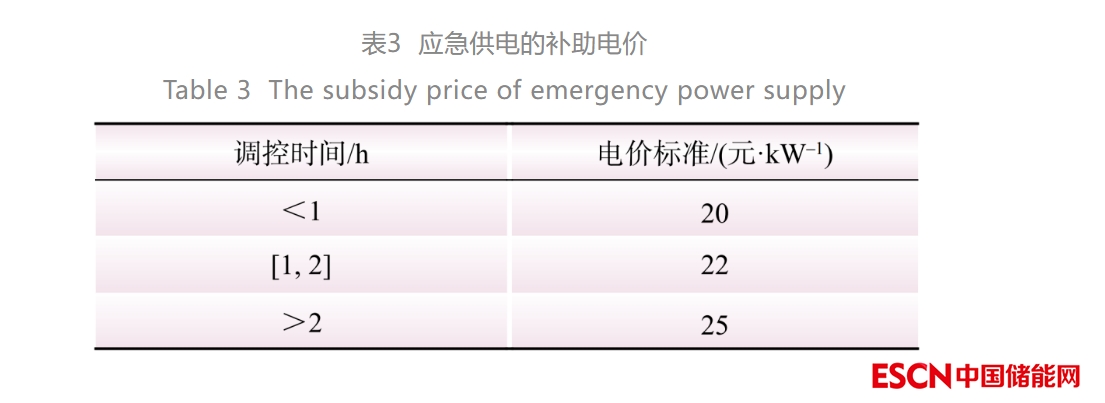 表3為根據(jù)江蘇省發(fā)布的電力需求響應實施細則[25]所設定的應急供電的補助電價。