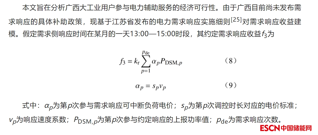 摘要:為使用戶側儲能收益最大化,提出了一種參與輔助服務市場的用戶側儲能優(yōu)化配置方法。首先,建立了用戶側儲能的全生命周期成本和考慮輔助服務的收益模型;其次,在兩部制電價下,基于對儲能電池運行特性和用戶負荷特性的考慮,建立了一種參與輔助服務的用戶側儲能優(yōu)化配置模型,以儲能容量和輔助服務參數(shù)為優(yōu)化變量,對工業(yè)用戶全壽命周期的凈收益進行優(yōu)化計算;然后,以廣西儲能輔助服務市場為例,實現(xiàn)了用戶側儲能最優(yōu)容量下的配置優(yōu)化,確定了參與輔助服務的變量值;最后,通過改變政策敏感度對比分析了不同輔助服務的經濟效益,給后續(xù)儲能投資提供了指導性意見。