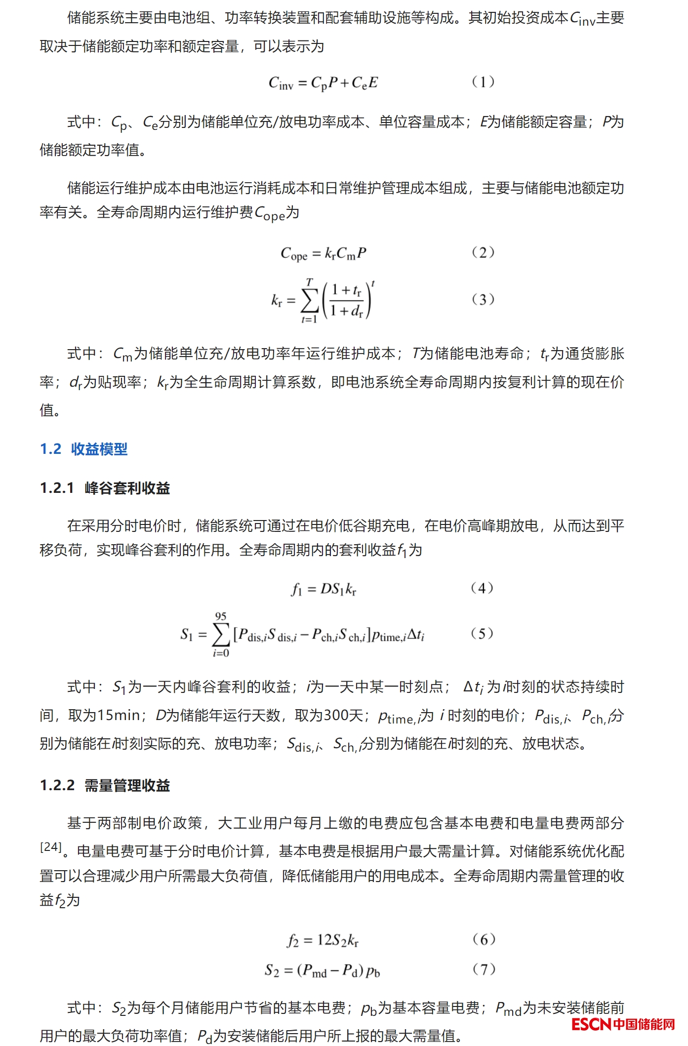 儲能全壽命周期內收益包括峰谷套利收益、需量管理收益、需求響應收益和應急供電收益,成本包括儲能初始投資成本和全壽命周期內的運行維護成本。
