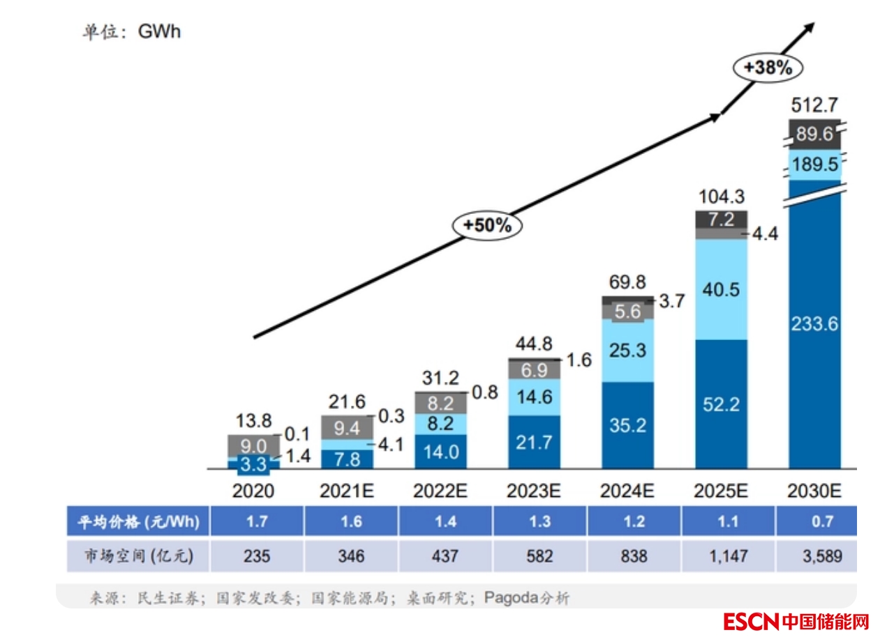 2020-2030年全球新型儲(chǔ)能需求估算及市場(chǎng)空間