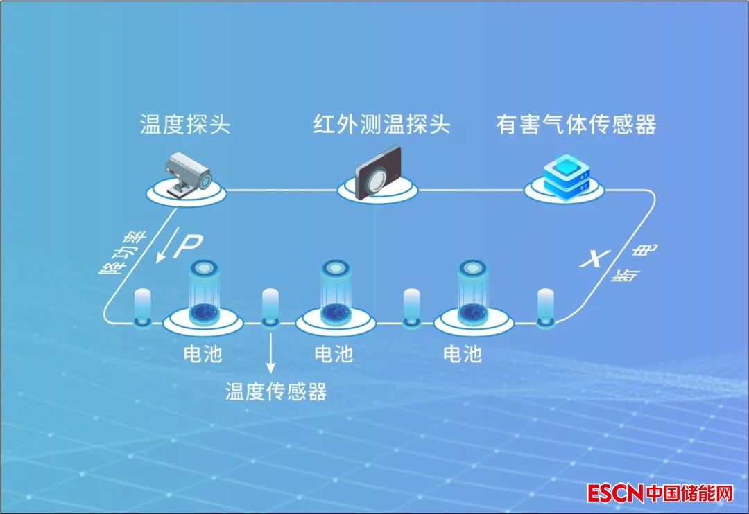 “首先,我們需要一個‘監(jiān)控’幫忙監(jiān)測艙內(nèi)電池的溫度,若有異常能夠及時反饋,而可聯(lián)動電池管理系統(tǒng)(BMS)正好能夠發(fā)揮此作用。”國網(wǎng)紹興市上虞區(qū)供電公司運(yùn)檢發(fā)展部主任蔣春鋒解釋,整個系統(tǒng)主要由溫度探頭、紅外測溫探頭和有害氣體傳感器組成,同時相鄰兩節(jié)單體電池連接排上還設(shè)有溫度傳感器。系統(tǒng)還設(shè)置了溫度預(yù)警門限,一旦發(fā)現(xiàn)異常后,便采用降功率和斷電的方式切斷電池能量傳遞路徑,有效降低電池過溫、過充或過放導(dǎo)致的熱失控風(fēng)險。