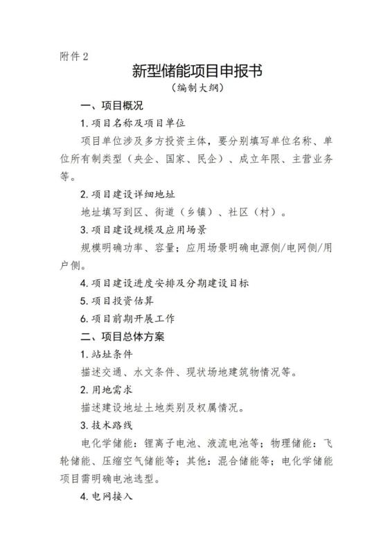 2.新型儲(chǔ)能項(xiàng)目申報(bào)書(編制大綱)
