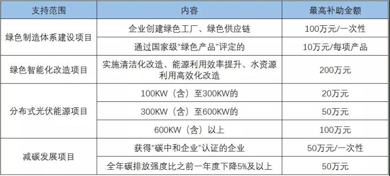 綠色化補助資金重點支持范圍: