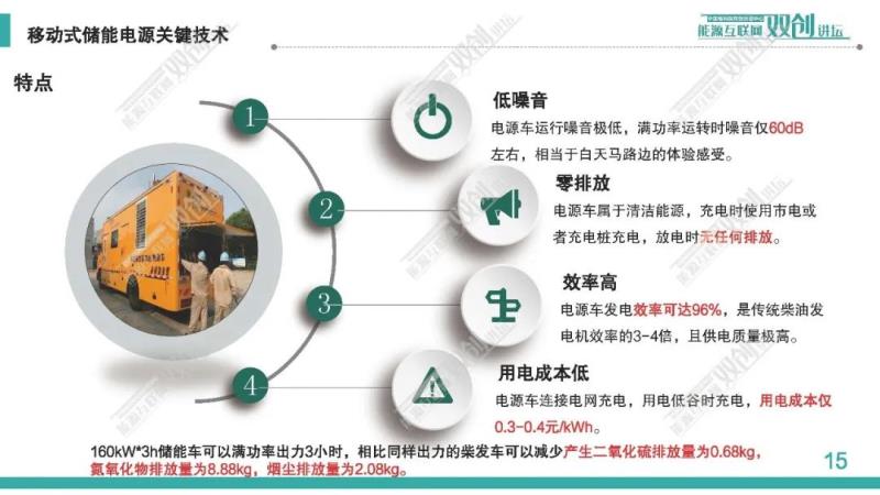 在"30.60"雙碳目標背景下,電力儲能作為高比例可再生能源接入電網(wǎng)及消納的關(guān)鍵支撐技術(shù),地位十分重要。本課程重點介紹了移動式儲能供電系統(tǒng)面向終端用戶的電能清潔替代要求,分析了移動儲能實現(xiàn)電網(wǎng)清潔保供電、不停電作業(yè)、臺區(qū)增容等的保障作用。針對移動式儲能供電系統(tǒng),從關(guān)鍵技術(shù)、裝備研制和工程應(yīng)用等方面介紹移動供電電源車、移動供電方艙技術(shù)及產(chǎn)品推廣情況,探討終端電能替代的未來發(fā)展趨勢及關(guān)鍵問題。