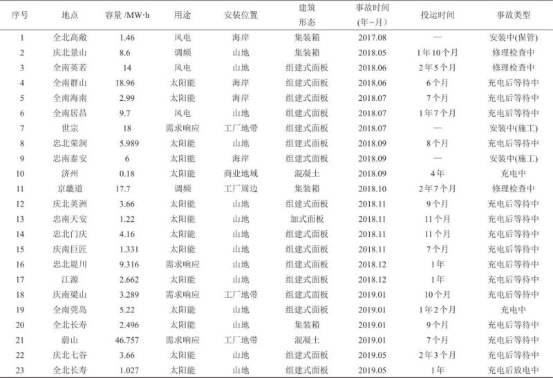 表1 2017年8月—2019年6月韓國儲能電站事故