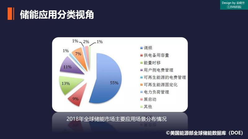 我們?nèi)绻且允窞殍b,我們做能源變革顛覆性技術(shù),現(xiàn)在大家都已經(jīng)達成了共識,我們儲能是一項能源變革顛覆性技術(shù)。當(dāng)前的儲能應(yīng)用大概分類有哪些?這邊是美國能源部關(guān)于全球儲能數(shù)據(jù)庫做的分類,是2018年的市場分類,我們看到大概是分為調(diào)頻、供電備用容量、能量時移等等需求,我們可以看到這些應(yīng)用,大量的應(yīng)用都是在我們傳統(tǒng)的電力系統(tǒng)時代能夠想到的應(yīng)用,而當(dāng)儲能技術(shù)成熟了之后,我們理所當(dāng)然,認為所有的應(yīng)用都要展開。