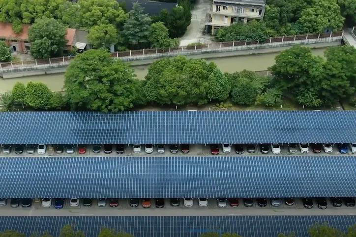 走進(jìn)上海閔行工業(yè)區(qū),一排排湛藍(lán)色“光伏停車場棚”格外引人注目?!斑@是由薄膜光伏所覆蓋的停車場頂棚,既能遮陽避雨、方便停車,又可為新能源車充電,大大節(jié)約了工業(yè)區(qū)的電耗。”國網(wǎng)上海綜合能源服務(wù)有限公司營銷總監(jiān)張宇說。