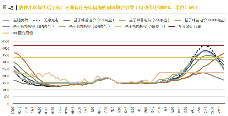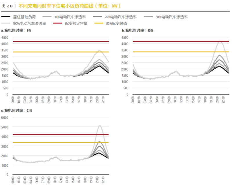 圖9 | 不同電動(dòng)汽車滲透率帶來(lái)的住宅小區(qū)用電負(fù)荷變化