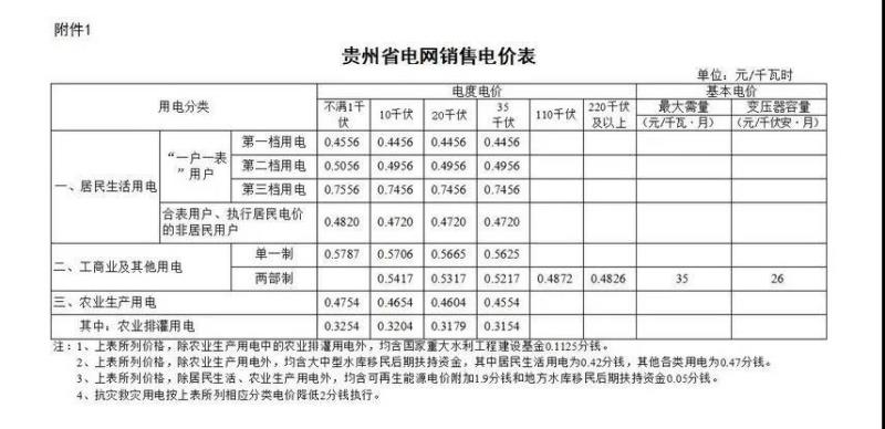 附:貴州省電網(wǎng)銷售電價表(2019年7月1日起執(zhí)行)