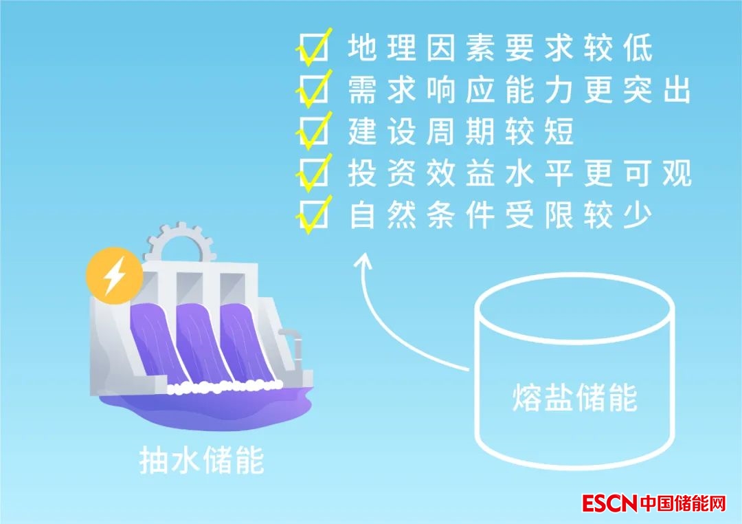 抽水儲(chǔ)能VS熔鹽儲(chǔ)能對(duì)比圖