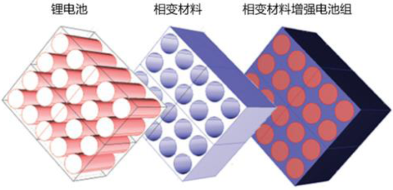 相變技術利用相變材料在發(fā)生相變時可以儲能與放能的特性達到對電池低溫加熱與高溫散熱的效果,目前主要有兩種方式,一是將相變材料填充到泡沫金屬或膨脹石墨中,另一種是將相變材料添加到其他導熱性能好的材料中。